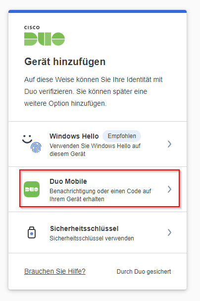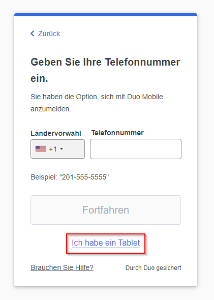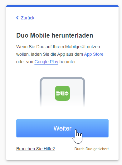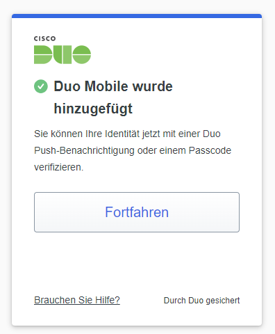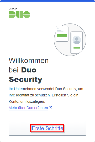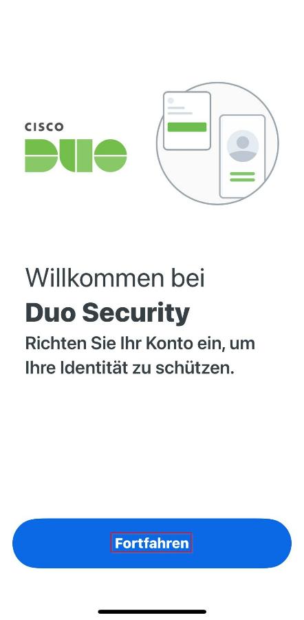Sie sehen nun den Begrüßungsbildschirm von Duo Security. Tippen Sie auf Fortfahren, um mit der Einrichtung zu beginnen.