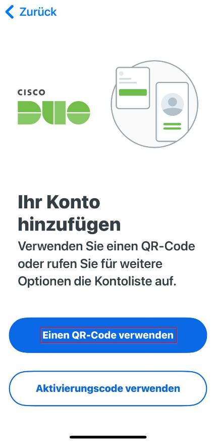 Wählen Sie nun die Option Einen QR-Code verwenden, um Ihr Konto hinzuzufügen.
